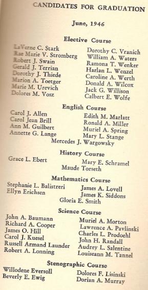 1946 Solomon Juneau High School (Thanks to MARY (SCHRAMEL) CLEMENS for photo's |
