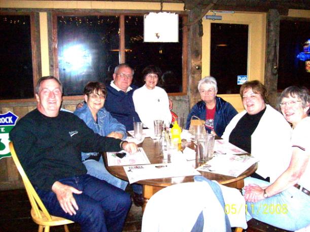 | Chuck Armstrong, Helen (Friedmann) Armstrong, Nancy Roeming, Mary Jo & Jack Barwind & Phil Dibb (in back) |