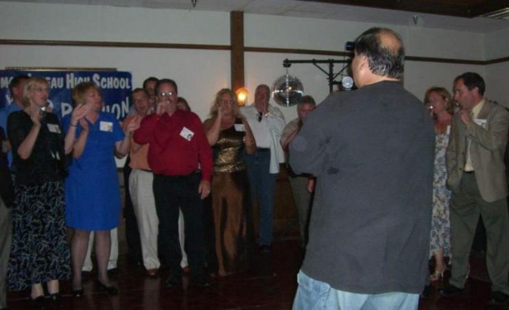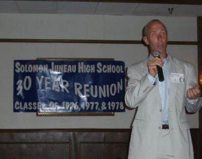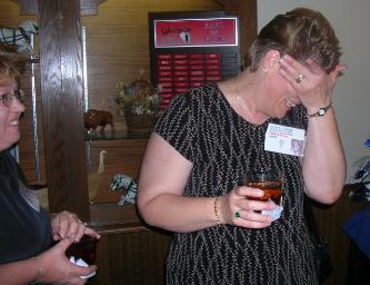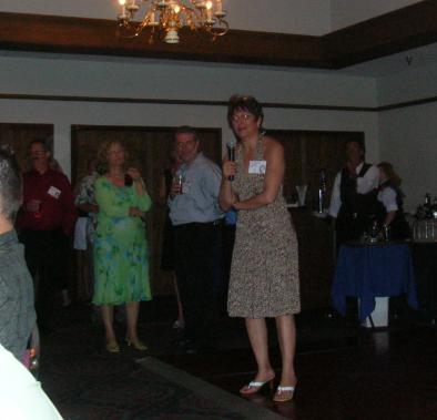 | (Below) Cathy Albrecht 1976 speaks to classmates |