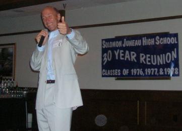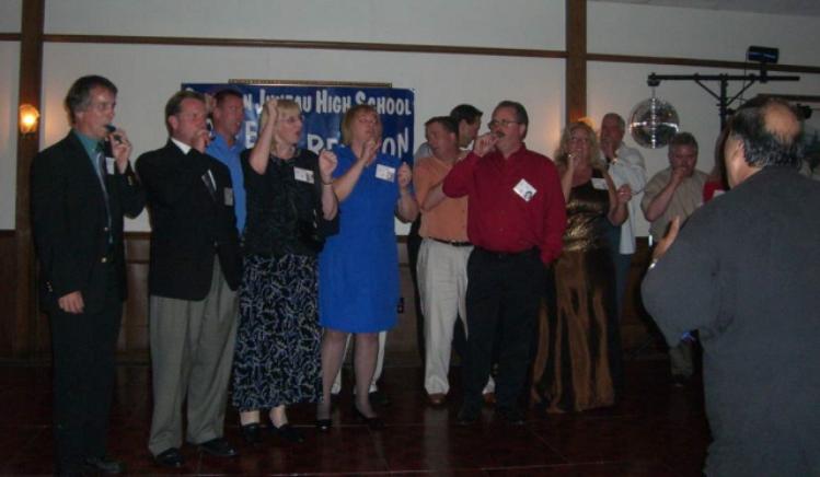 | One more rendition of, It's Juneau High! (L - R) Carol Pemrich 1977, Jayne Ritter 1977, Dave McLees 1976, Greg Sidoff 1976, Sandy Worden 1976, Al Brkich 1977, Greg Beranek 1976, Donovan Koeberl 1976, Judy Beranek 1977 & Jim Cincotta 1978 |