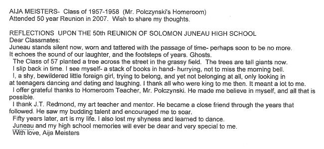 classes. One of the facts that was brought up at the last reunion was that Juneau had